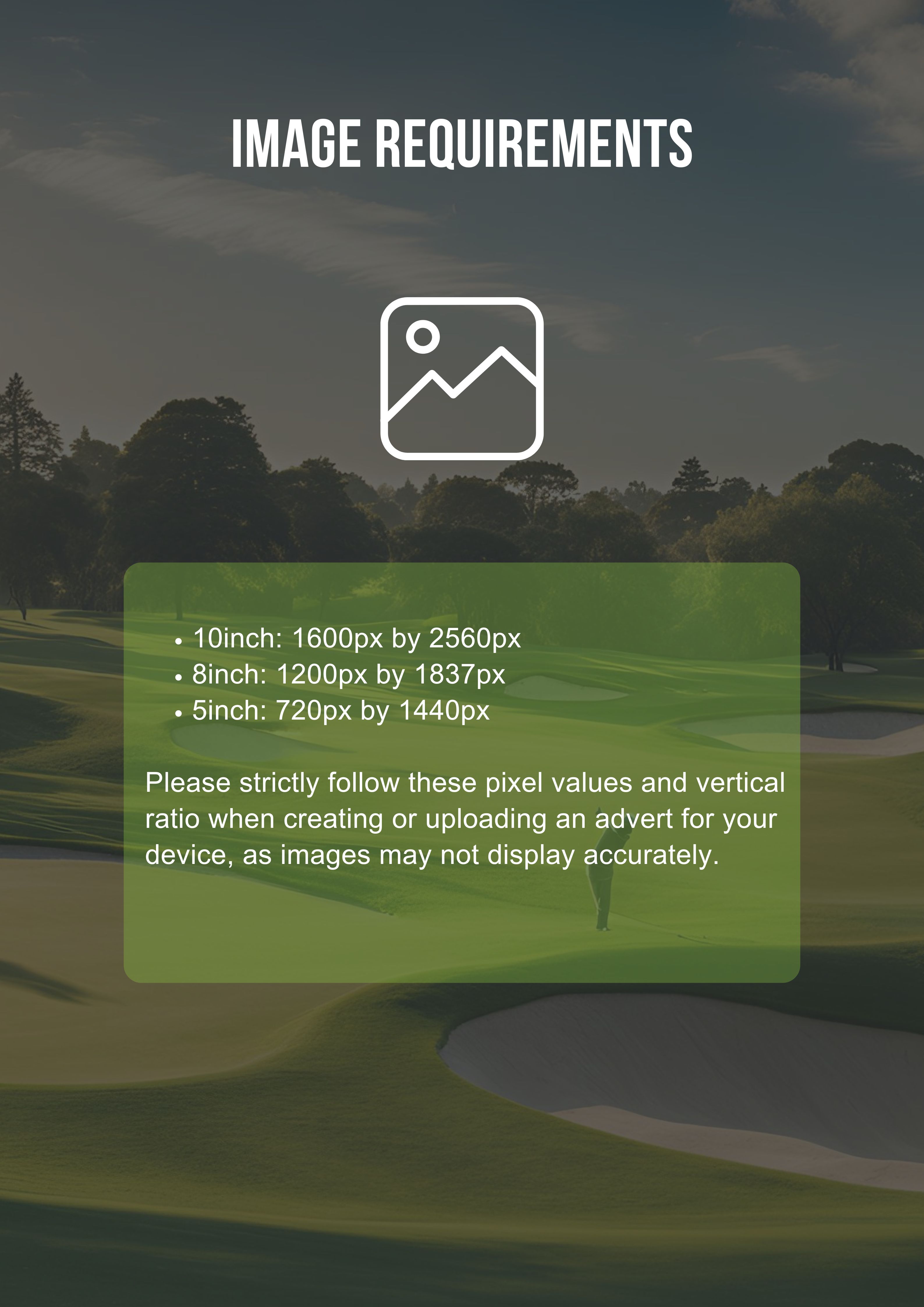 Please strictly follow these pixel values and vertical ratio when creating or uploading an advert for your device, as images may not display accurately.