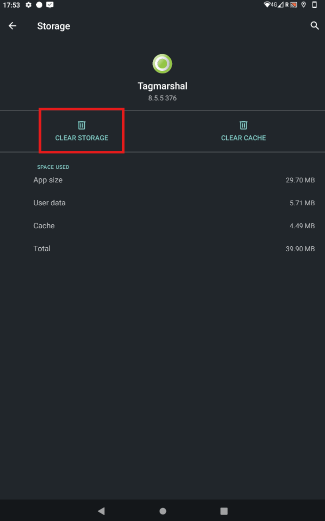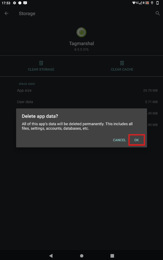 Tap on Clear storage, and then press OK on the pop-up to confirm.