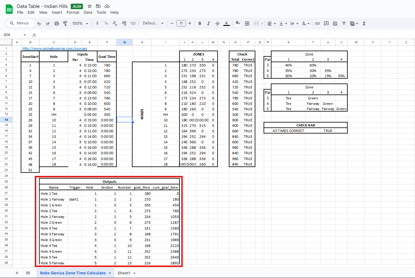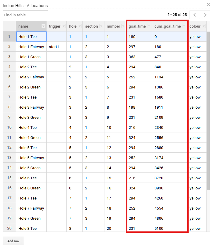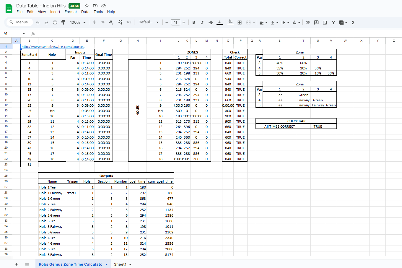 We use the data table to calculate the hole times for each individual zone on the KML file. This is the