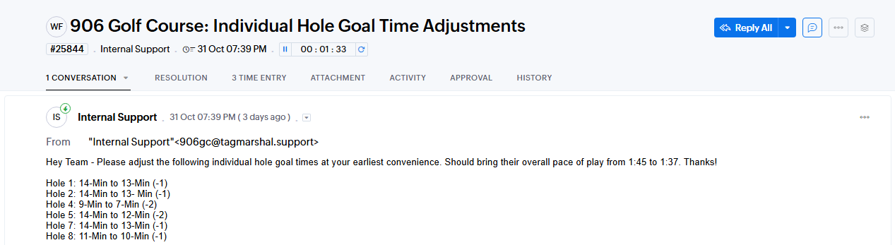 For any hole time adjustments, you'll receive a request from either one of our CSAs or directly from the course. For this course, we received this request by one of our CSAs, Cole Chachko.