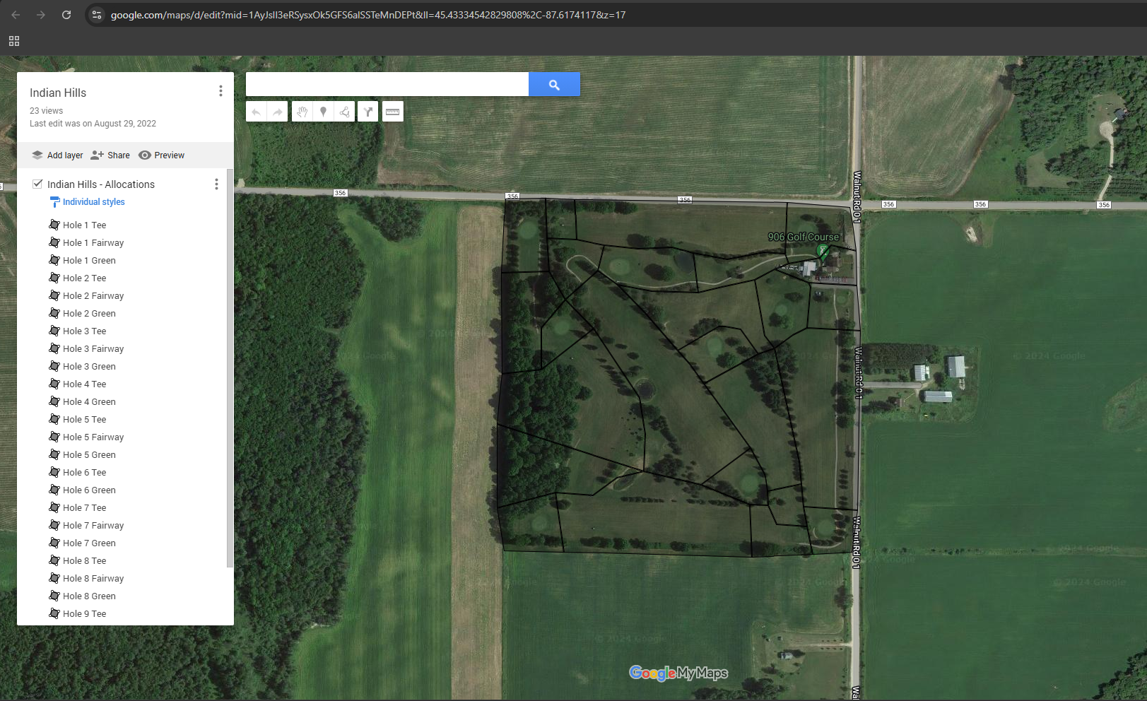 906 Golf Course (Indian Hills). We'll need to open the Data Table and KML (sections) file for the course. You can find the files in